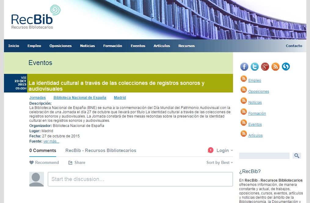 Día Mundial del Patrimonio Audiovisual con la celebración de una Jornada el día